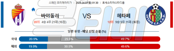 04월07일 레알 바야돌리드 vs 헤타페 CF 스페인리그 생중계,스포츠분석,스포츠중계